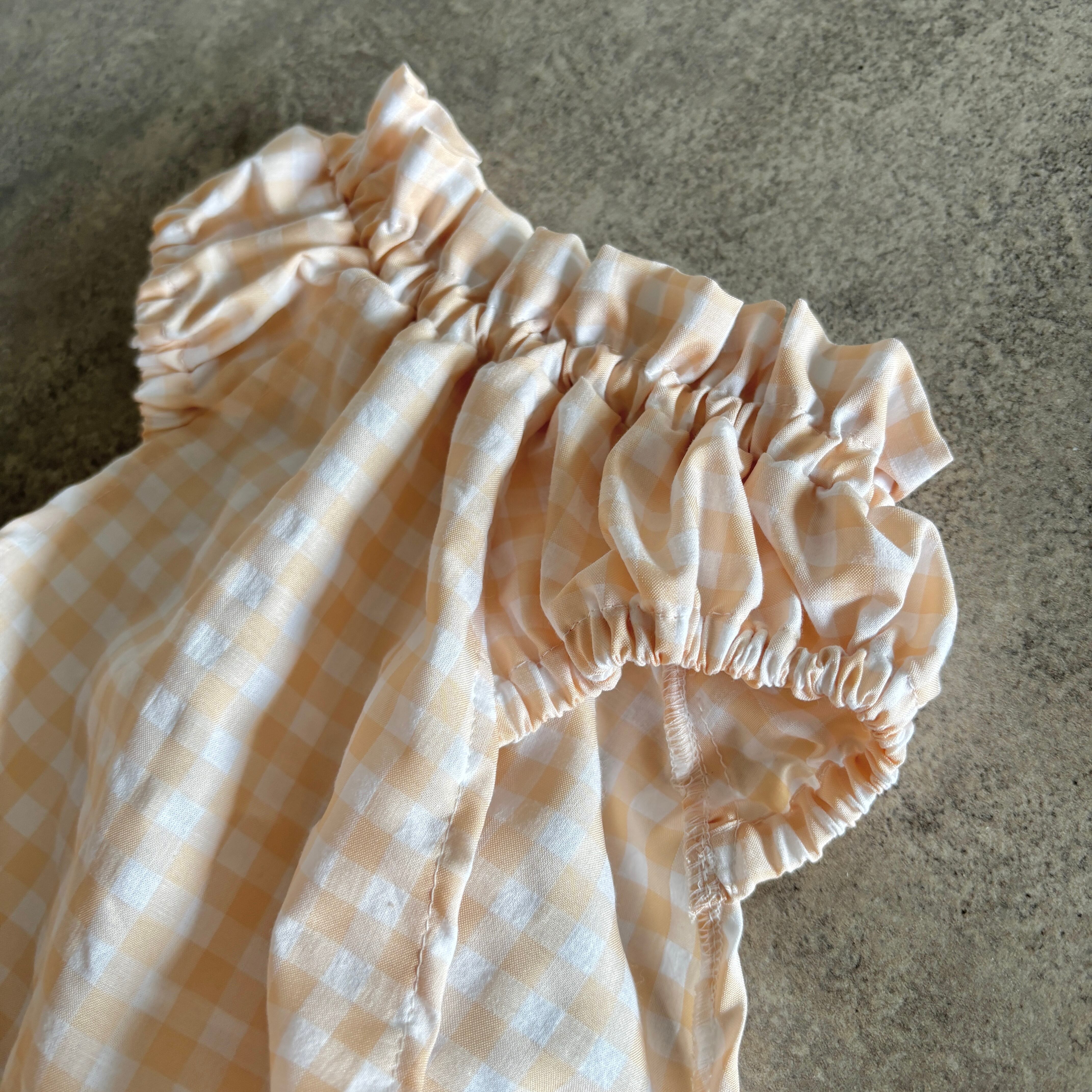 首元と裾部分のギャザーが可愛いブラウスです♪
