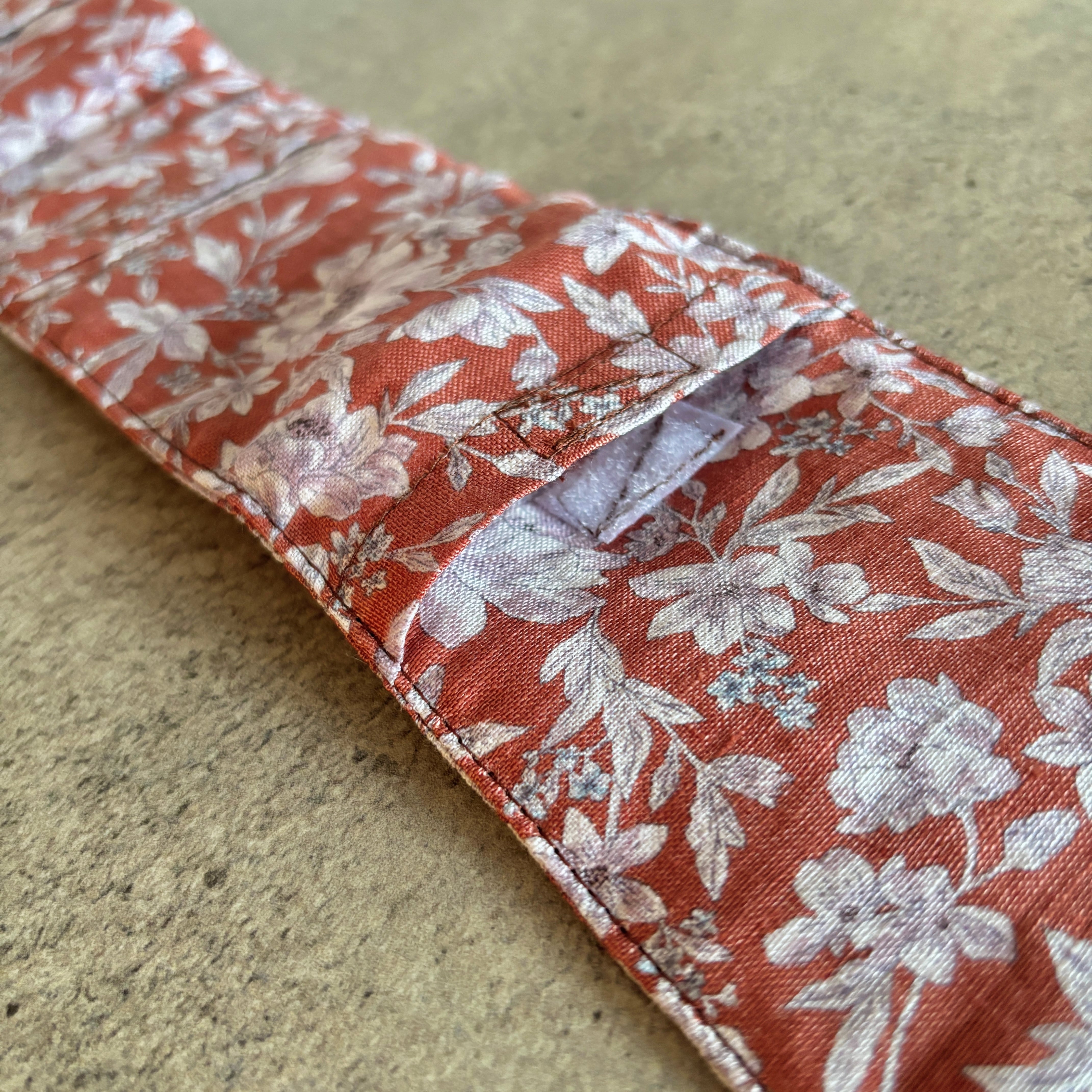 保冷材の飛び出し防止のためマジックテープで留められる仕様にしていますが
