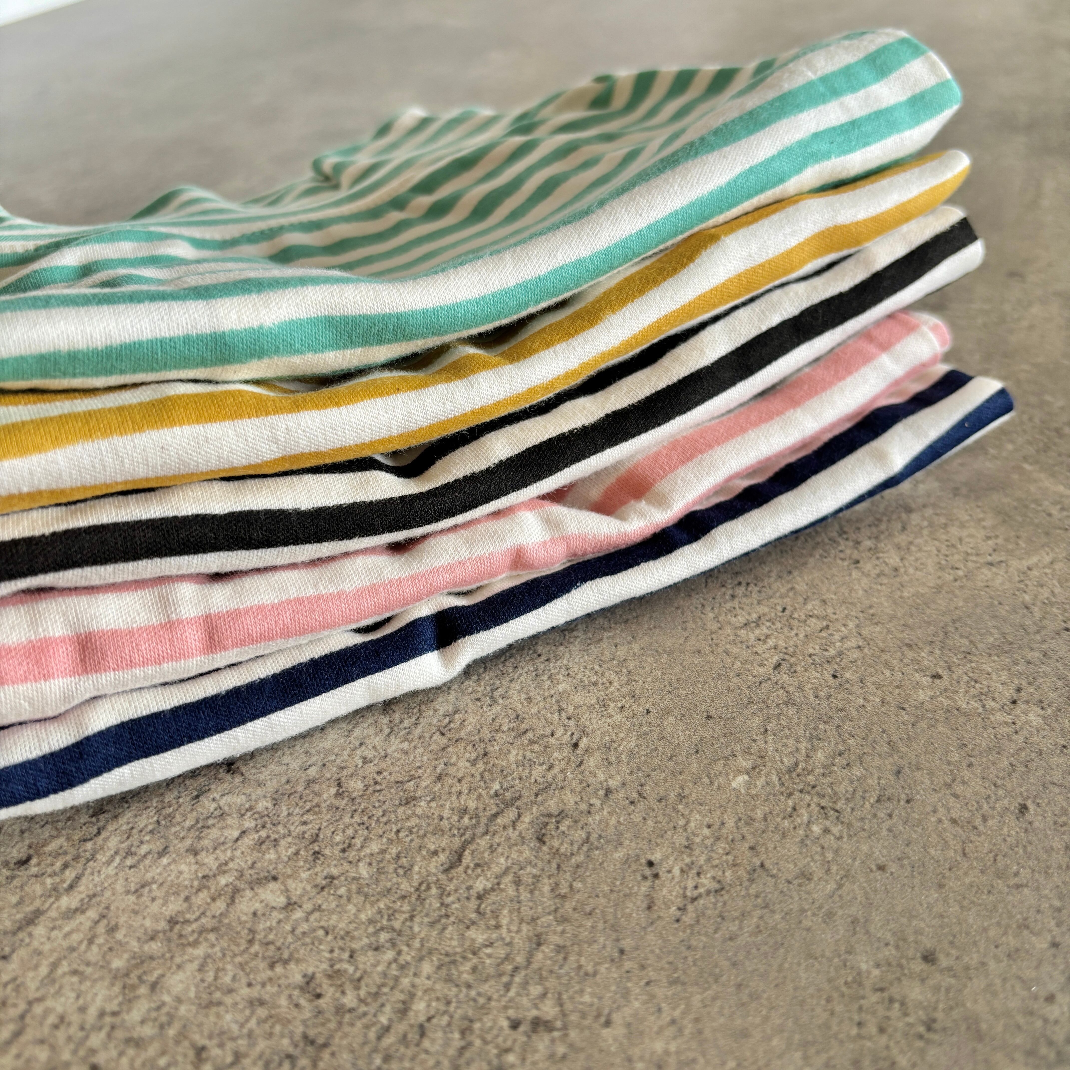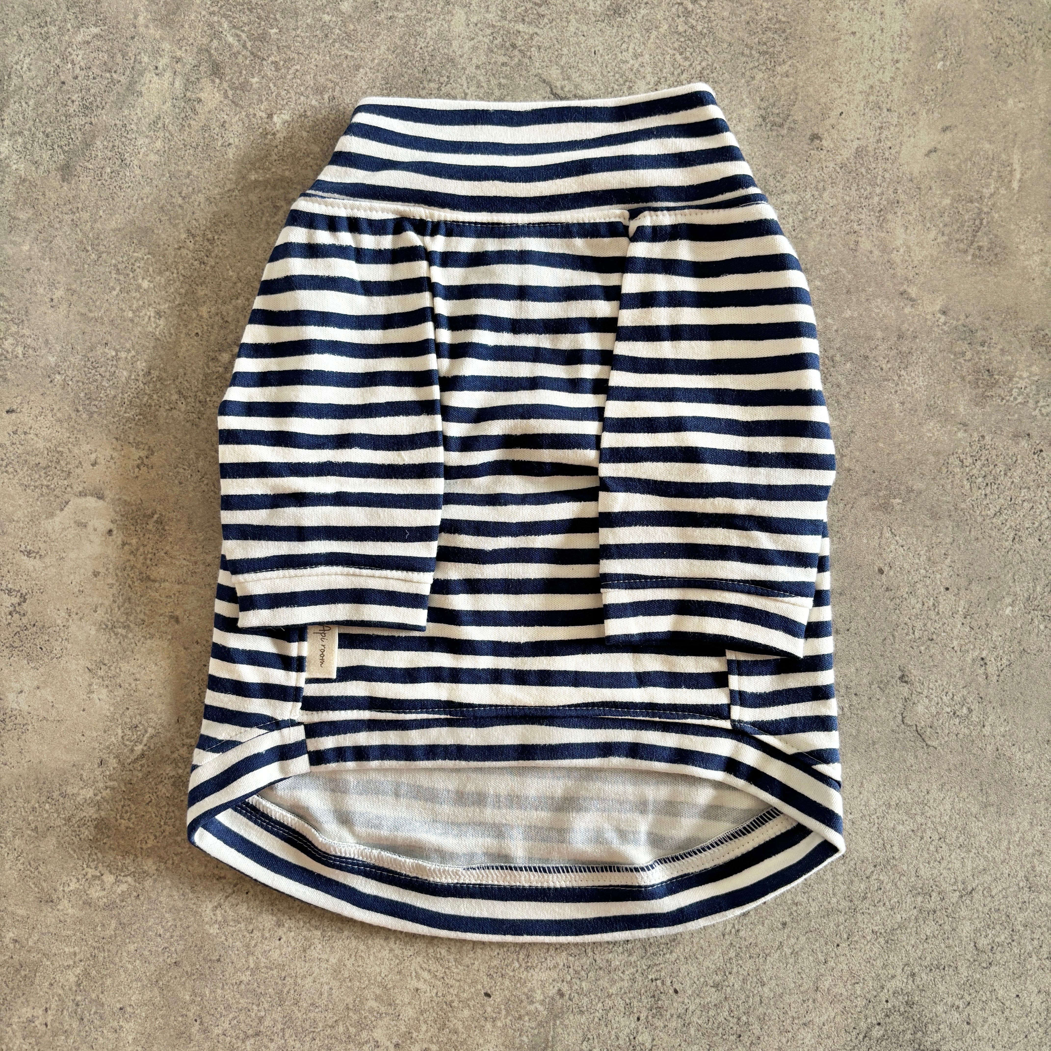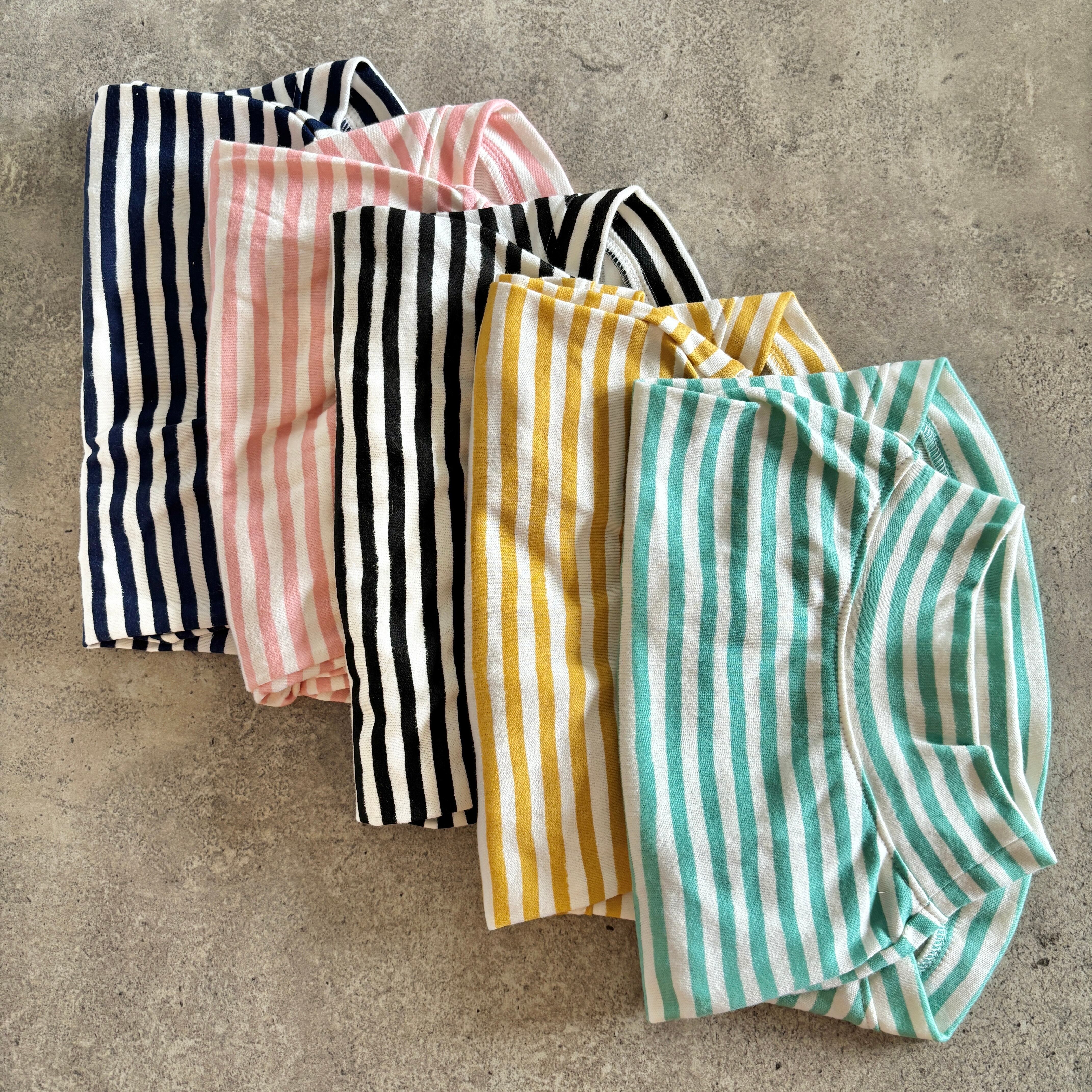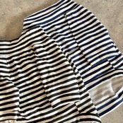 手書き風のボーダー柄がプリントされた生地でお作りしたTシャツです。