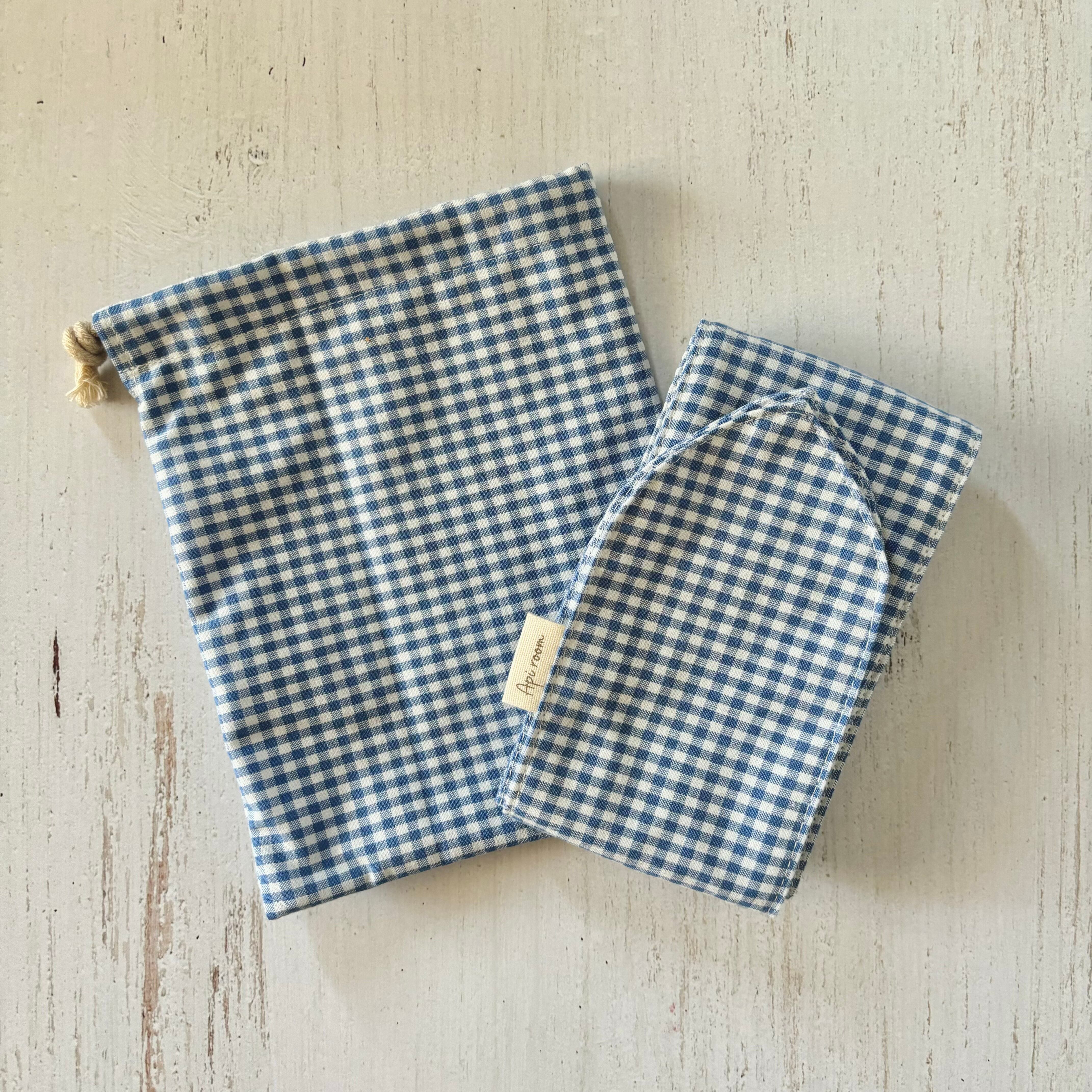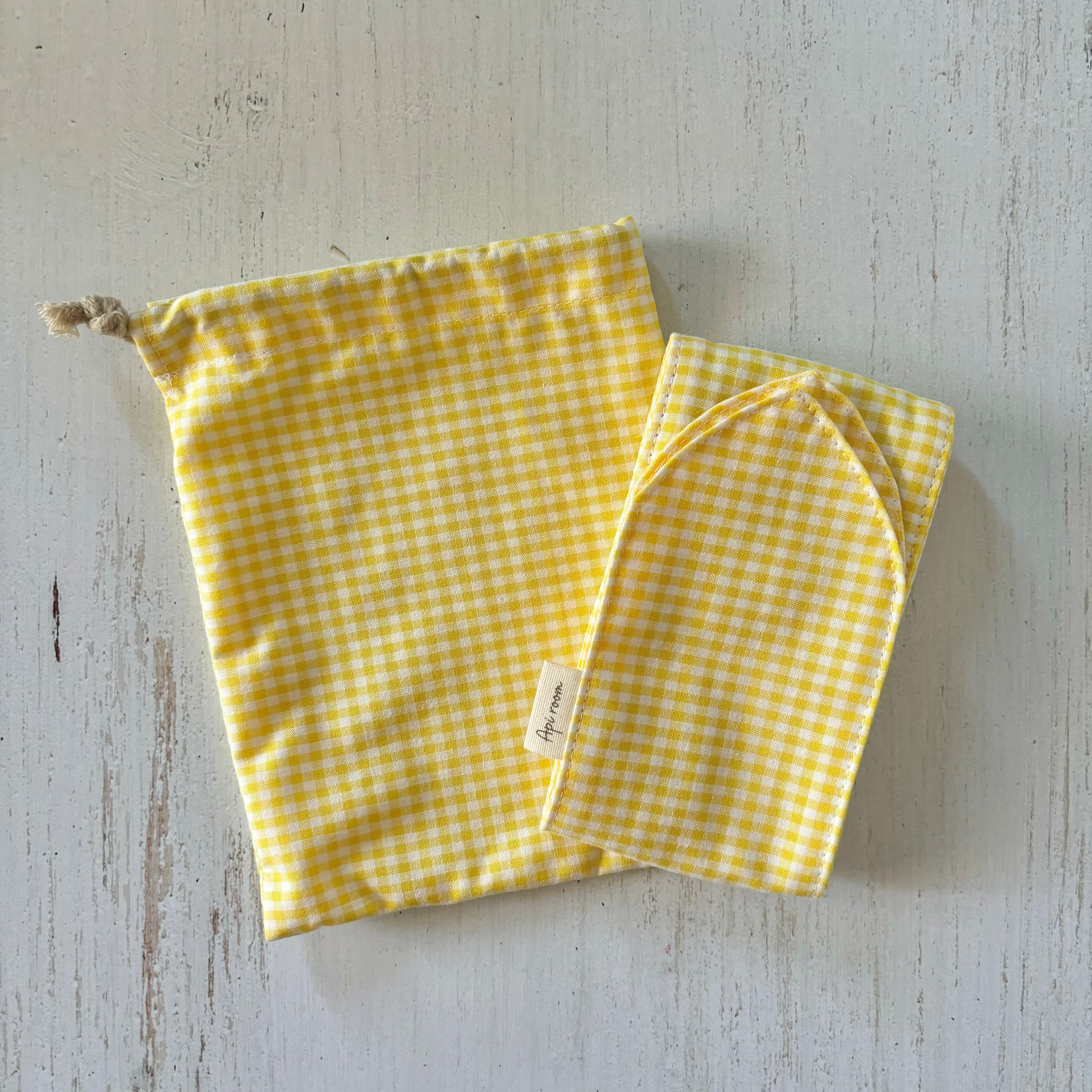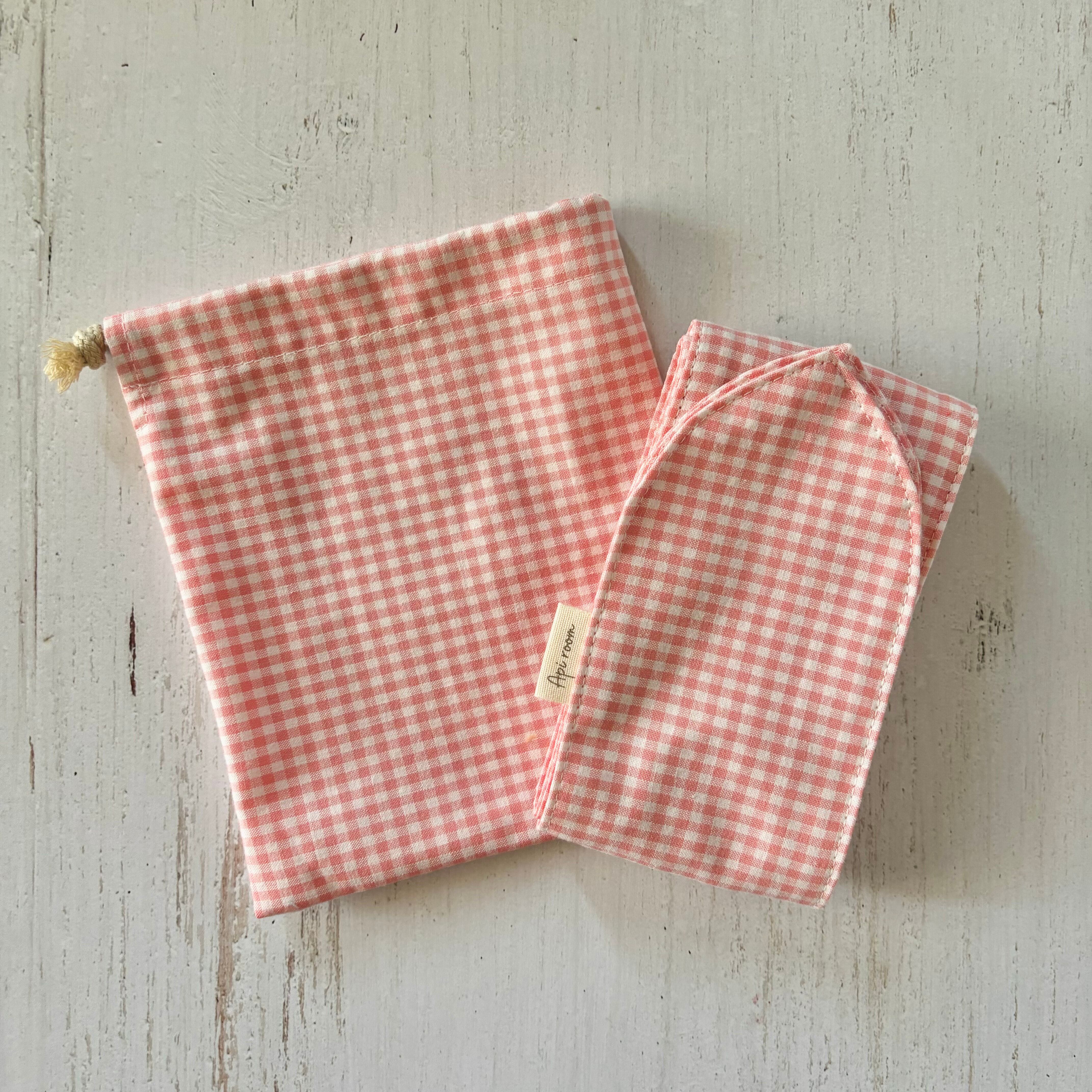 収納用の巾着とセットで、可愛いギンガムチェック生地でお作りしました♪