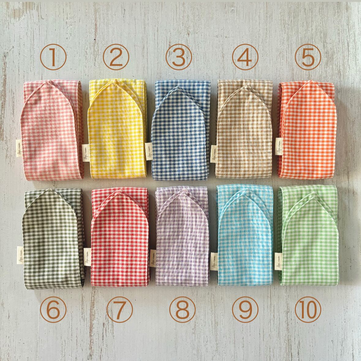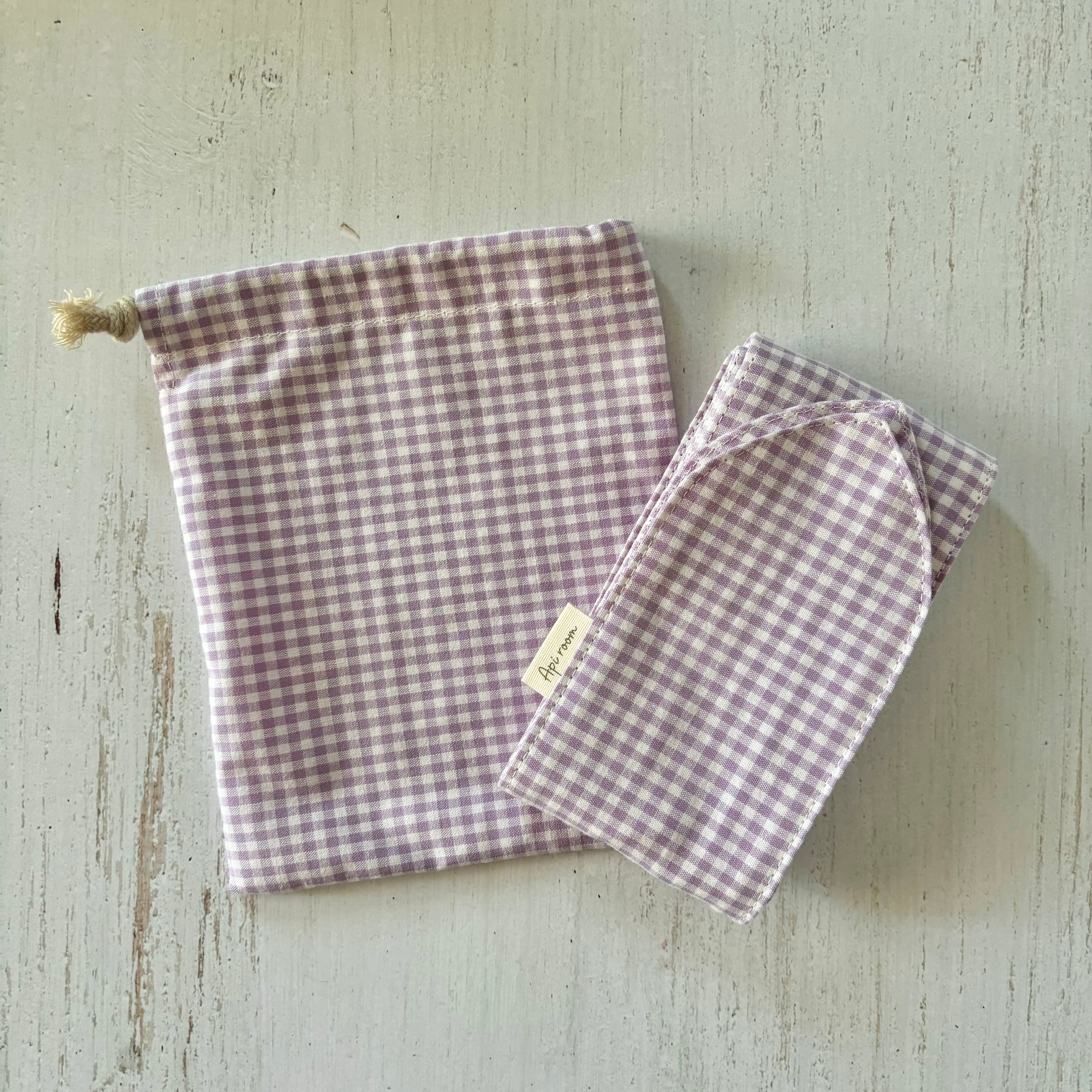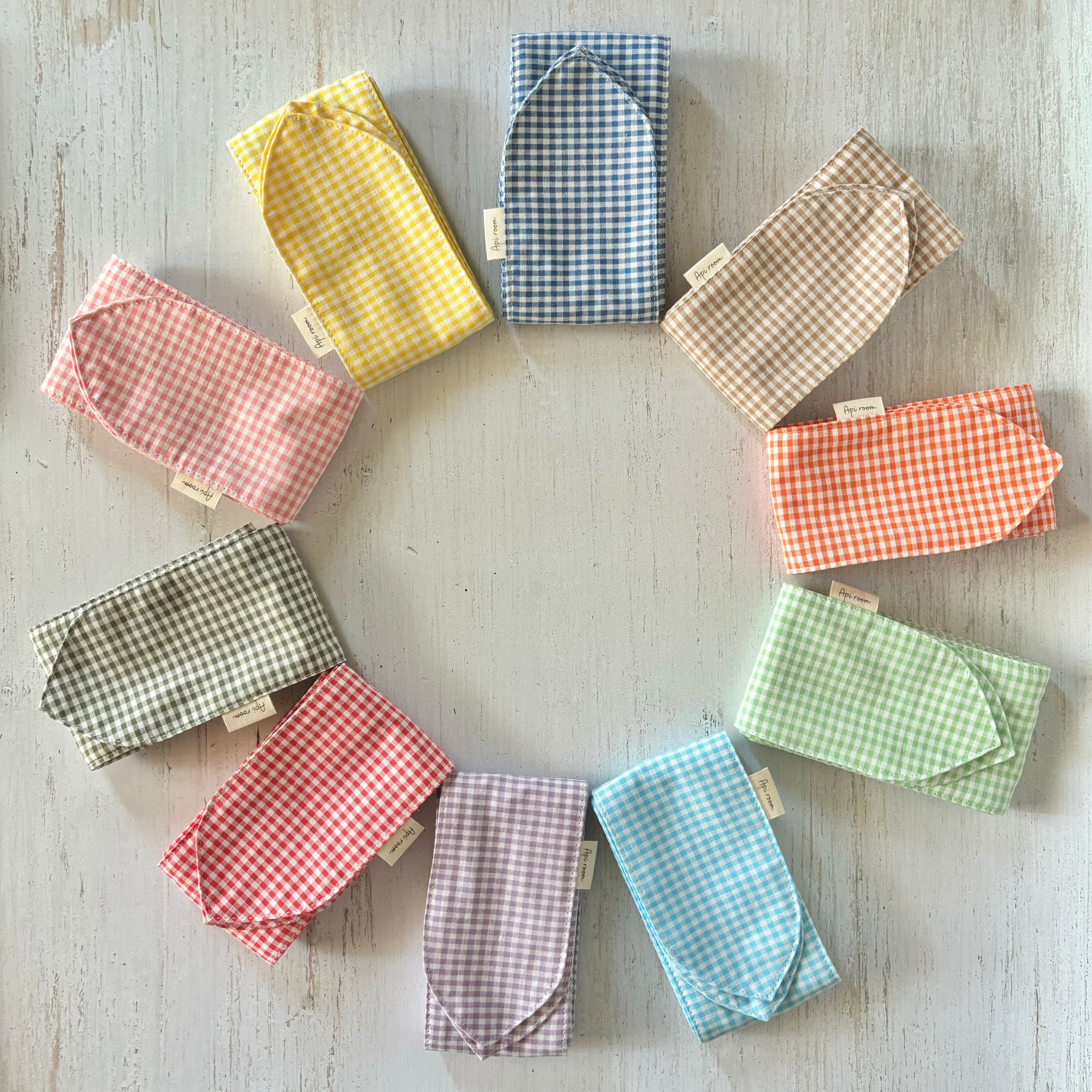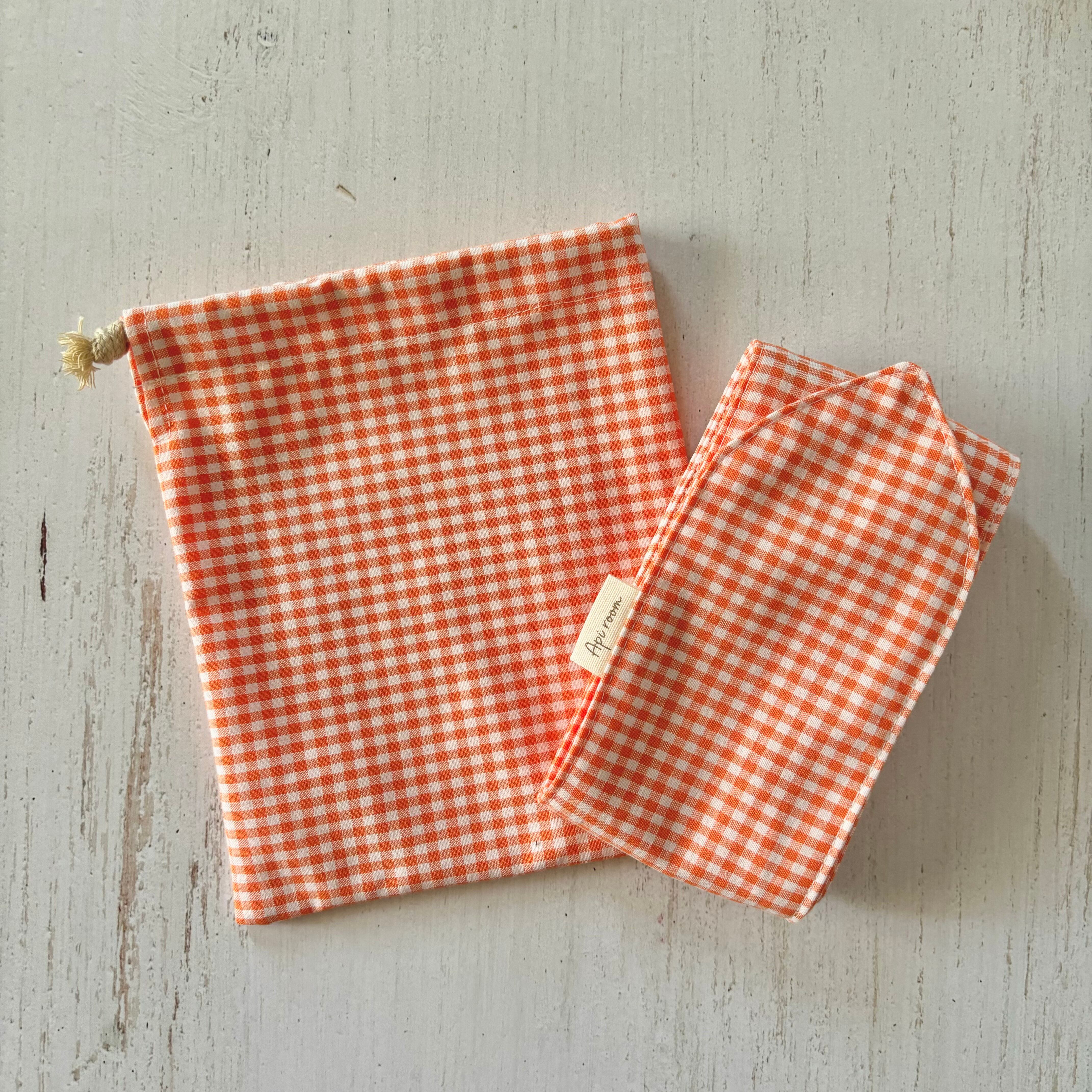 収納用の巾着とセットで、可愛いギンガムチェック生地でお作りしました♪