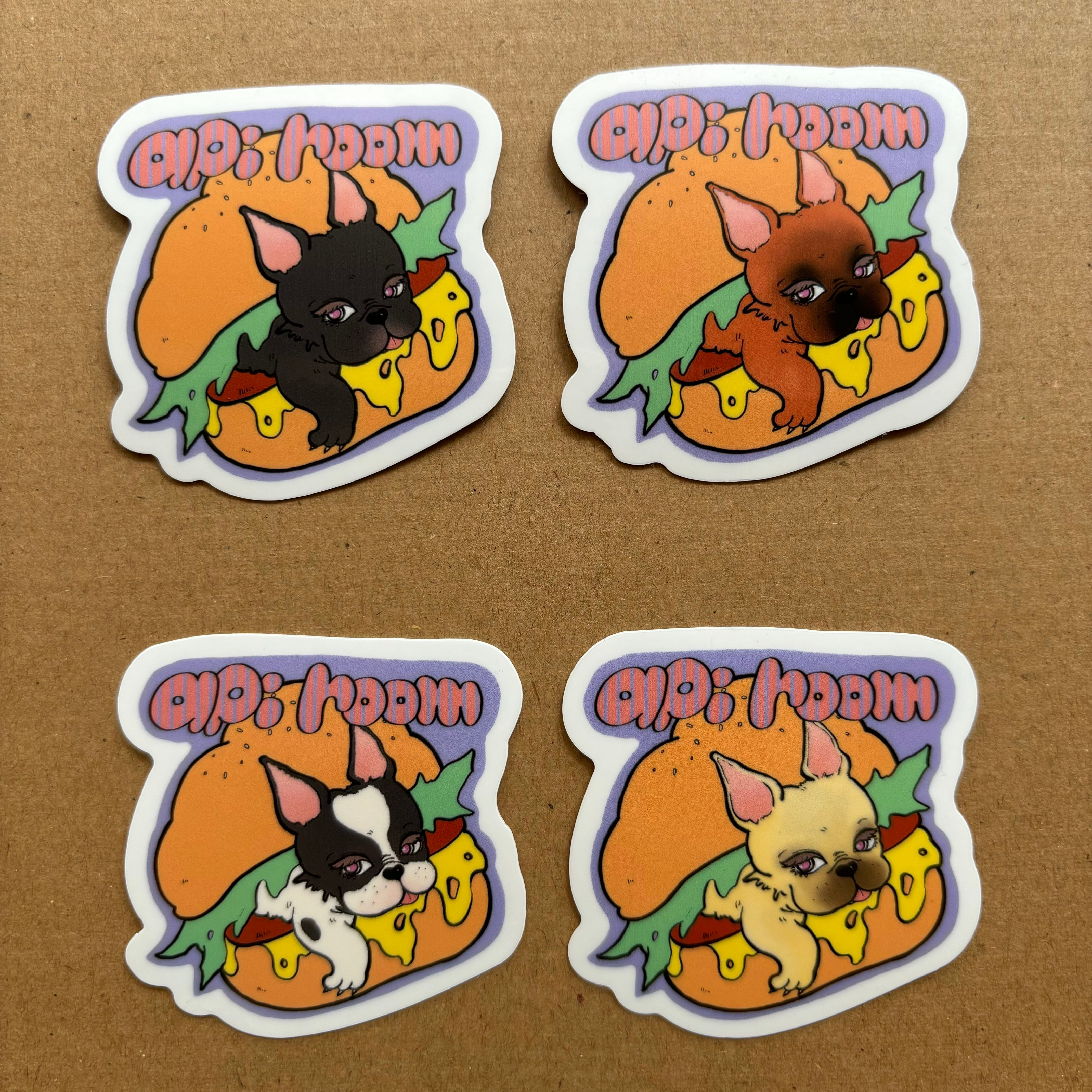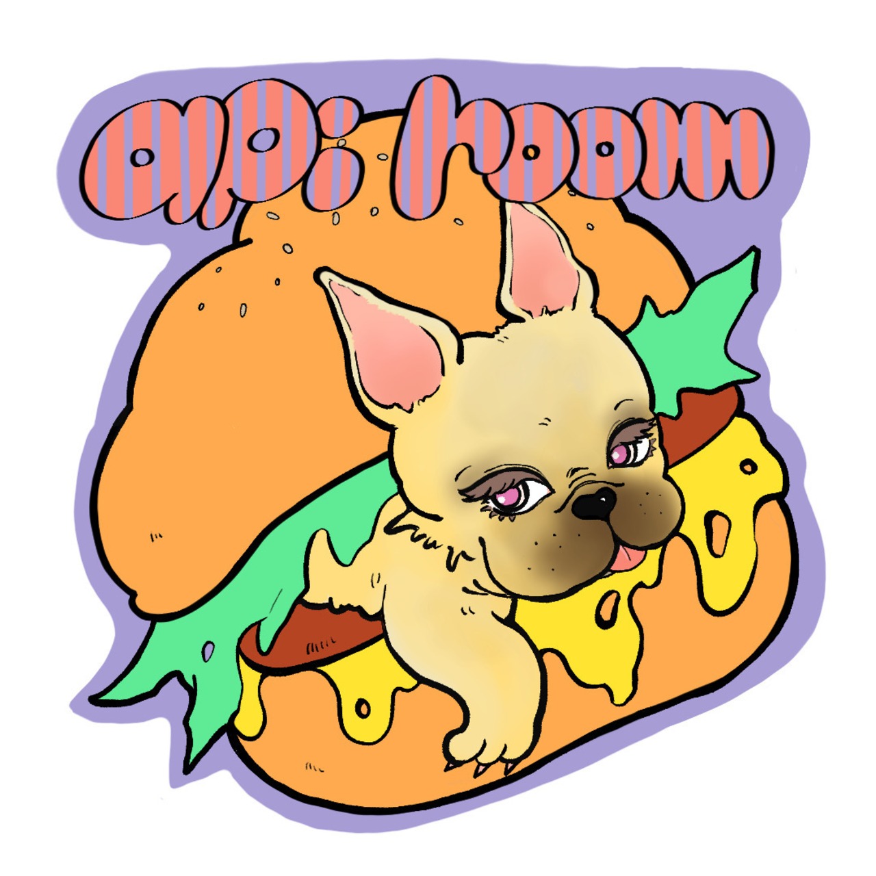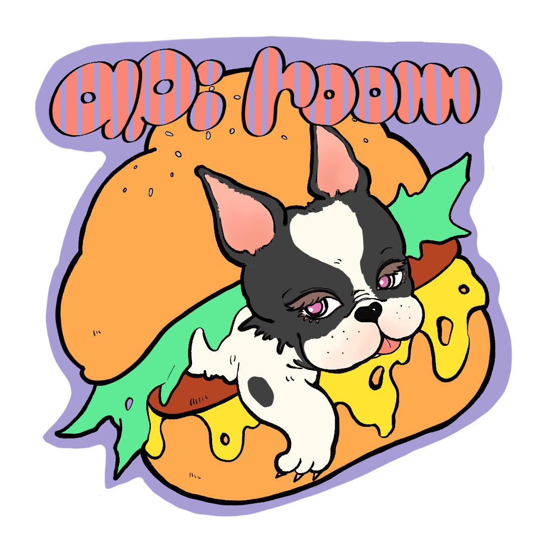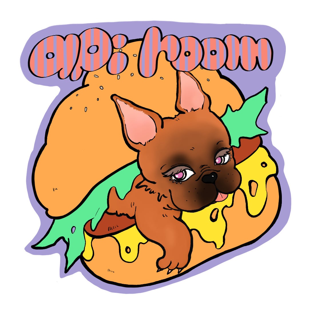 セクシーな表情でなぜかハンバーガーに挟まれているフレブルちゃん。。笑