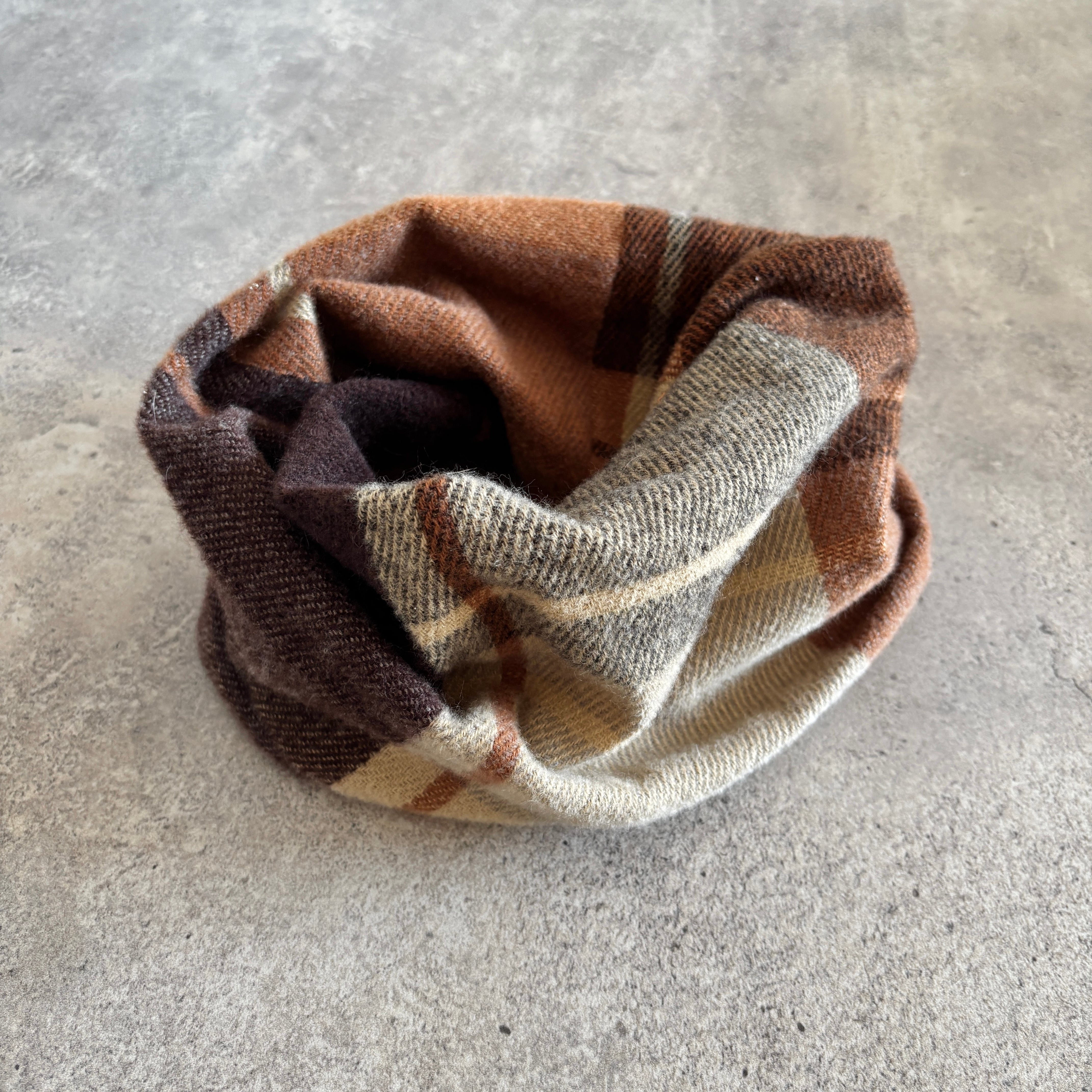 肌触りの良いマフラーからリメイクして制作したスヌードです。